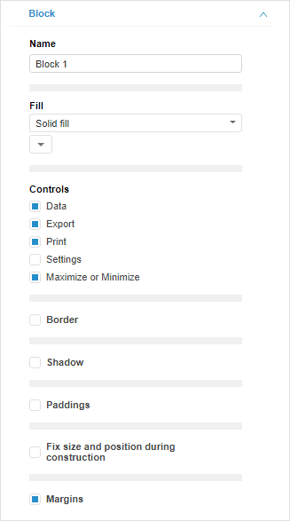 NOTE. Parameters on the tab depend on the dashboard creation mode and layout mode.