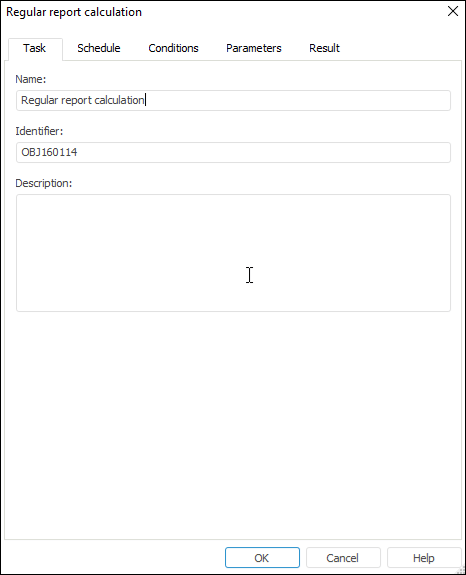 Determine task name and identifier. The title of the dialog box corresponds to the selected task type, for example, cube calculation, model execution, and so on.