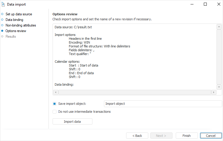 To start data import, click the Import Data button. After data import is finished the Results page opens.