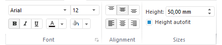 To set up title formatting in the desktop application, use the Font, Alignment, Sizes item groups on the Title ribbon tab: