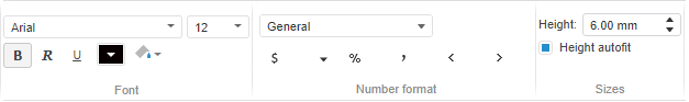 To set up title formatting in the web application, use the Text, Number format, Sizes item groups on the Title ribbon tab: