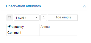 Observation attributes are a set of characteristics that each time series observation (point) has. A set of series attributes is set on creating time series database.