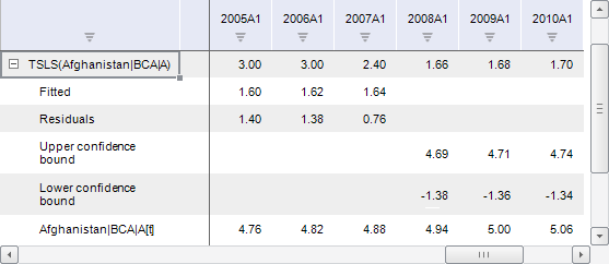 Depending on the transformation method, a calculated series can contain different sets of child series: facts, a modeling series with forecast values, remainders, confidence limits, and so on. For example: