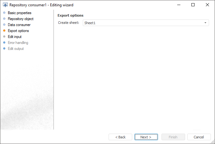 For example, using the document with the *.xlsx extension as a data consumer, the Export Options page looks as follows: