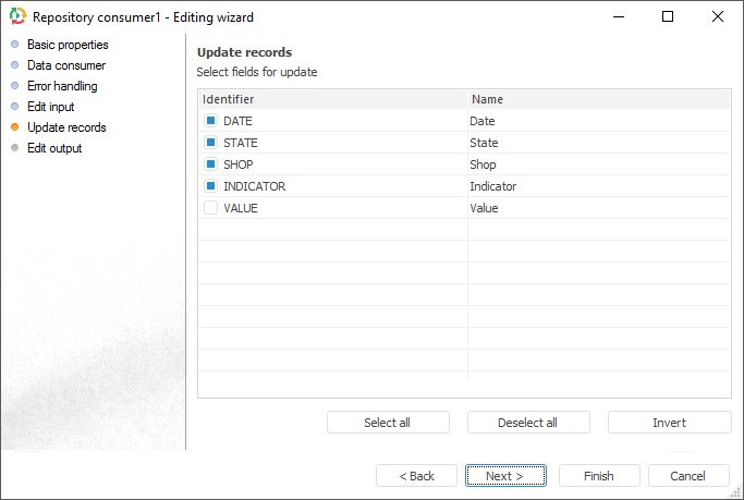 To select fields for update in data provider and consumer, use the Update Records page.