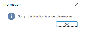 The NotImplementedBox method opens the dialog box with the following message: "Sorry, this function is under development".