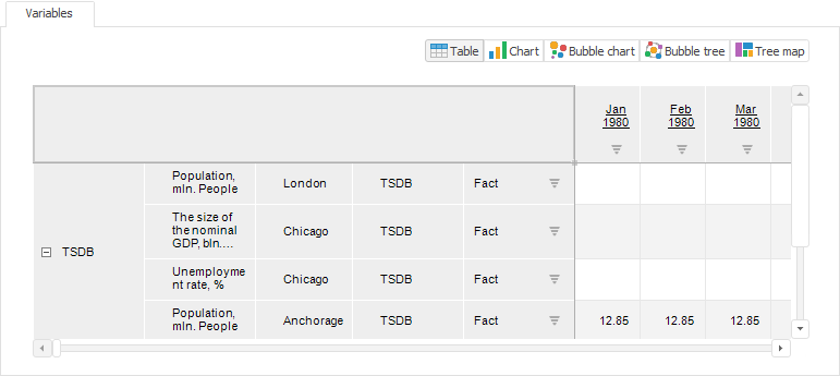 For example, Balance of Trade. Output Variables is a cube that contains output variable data for the Balance of Trade model.