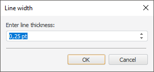 The user can determine line thickness value in inches or millimeters. Regardless of the measurement system selected in regional settings, millimeter or inch value is converted to points on clicking the OK button.