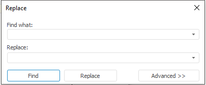 To execute advanced search, set additional parameters. Click the More button in the Replace dialog box: