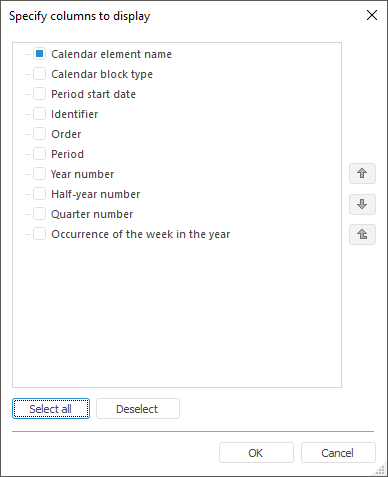 The dictionary working area enables the user to set elements selection.