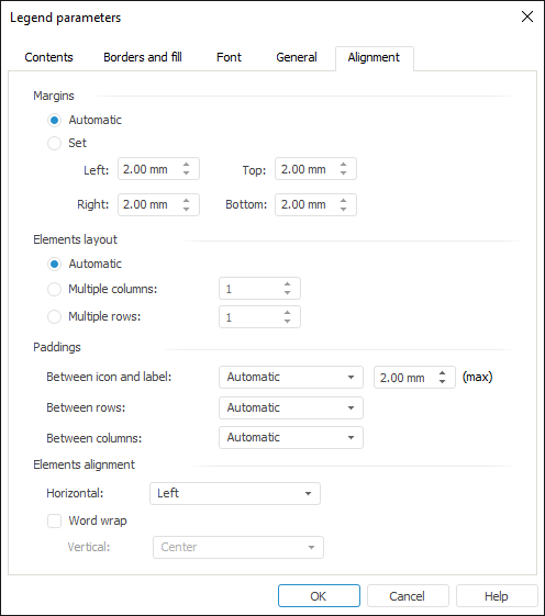 To set up alignment of the common legend, go to the Alignment tab in the Legend Parameters dialog box: