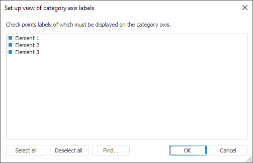 Select checkboxes of the points, labels for which must be displayed on the category axis. To select or deselect all labels, click the Select All or Deselect All buttons.