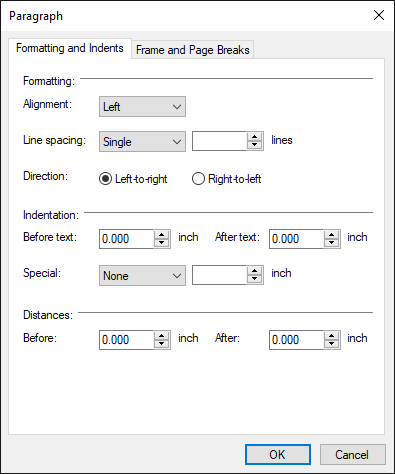 To set up general text formatting and indents, use the Formatting and Indents tab: