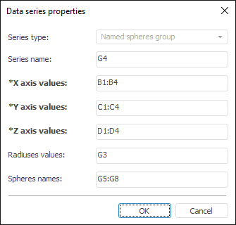 For series of all types, the fields containing the axis values are required. All the settings are entered as ranges.