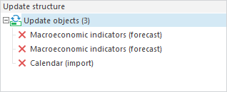 In the update structure a deletion object is displayed as an icon with red cross: