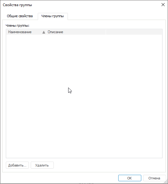на вкладке «Члены группы» окна свойств группы.
