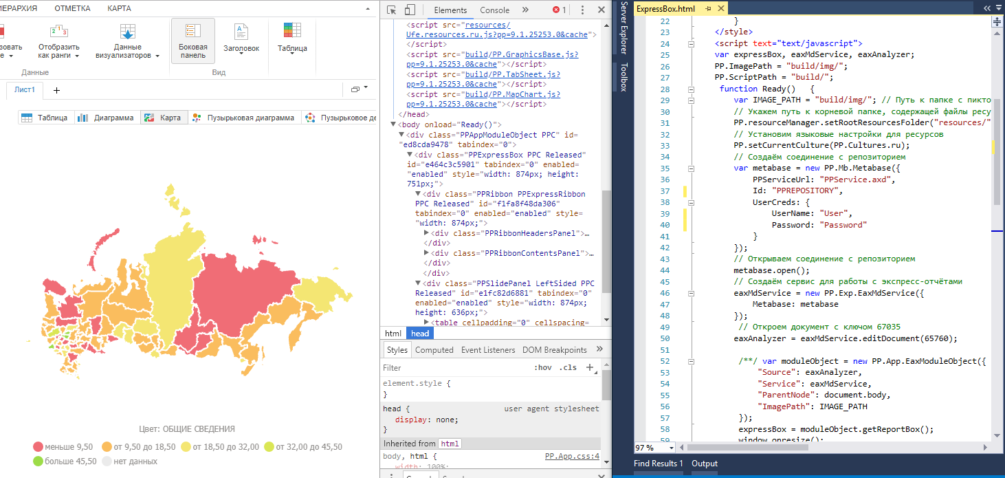 Разработка веб-приложений ведётся в сторонних средах разработки с использованием библиотеки DHTML-компонентов продукта «Форсайт. Аналитическая платформа». Подробное описание компонентов представлено в разделе «DHTML-компоненты».