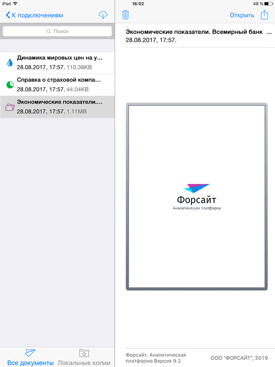 Начало работы с мобильным приложением | Оперативный просмотр и анализ данных (OLAP) | Работа с аналитическими панелями | Просмотр отчёта для печати