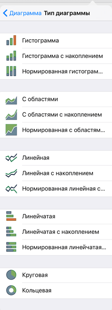 Для всех диаграмм, кроме круговой и кольцевой, может быть определен один из следующих подтипов: