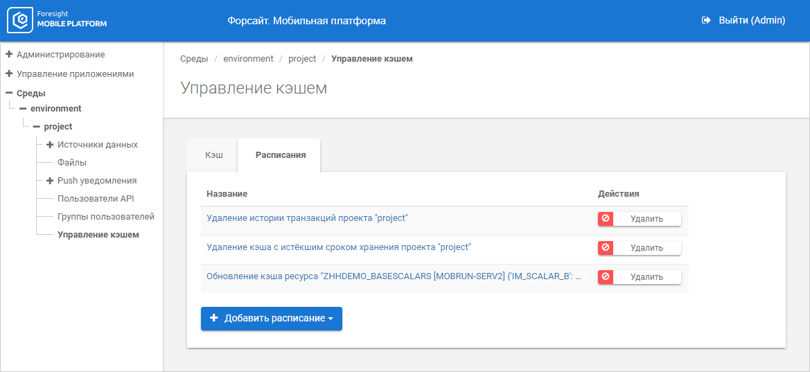 Удаление кэша с истёкшим сроком хранения. Для всех существующих кэшей задайте расписание удаления кэша с истёкшим сроком хранения, позволяющее избежать постоянного роста базы данных мобильной платформы. Срок актуальности кэша задается при импорте ресурса. Также удалить все устаревшие кэши можно вручную;