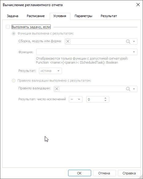 Примечание. Настройка расписания, условия и результата опциональна и может быть произведена в зависимости от требований задачи.