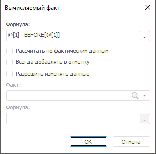 Для расчёта изменения показателя необходимо настроить вычисляемый факт.