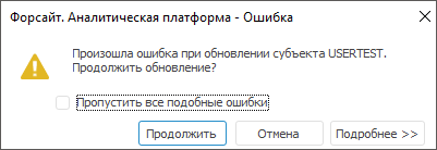 Пропустить все подобные ошибки. По умолчанию флажок снят и при продолжении обновления каждая подобная ошибка будет выдаваться в окне уведомления. При установке флажка и продолжении обновления подобные ошибки не будут выведены в окне уведомления;