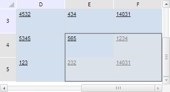 Для выполнения примера необходимо наличие на html-странице компонента TabSheet с наименованием «tabSheet» (см. «Пример создания компонента TabSheet»). Определим и выделим диапазон ячеек E4:F5, находящийся в невидимой области таблицы. Затем выполним прокрутку так, чтобы он оказался видимым: