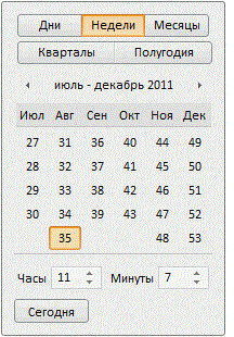 Если для свойства Mode установить значение 1 (Mode: 1), то компонент будет отображаться в режиме недель: