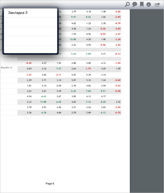 В результате выполнения примера была создана закладка для последней страницы документа регламентного отчёта. Также было отображено всплывающего окно, содержащее таблицу с закладками: