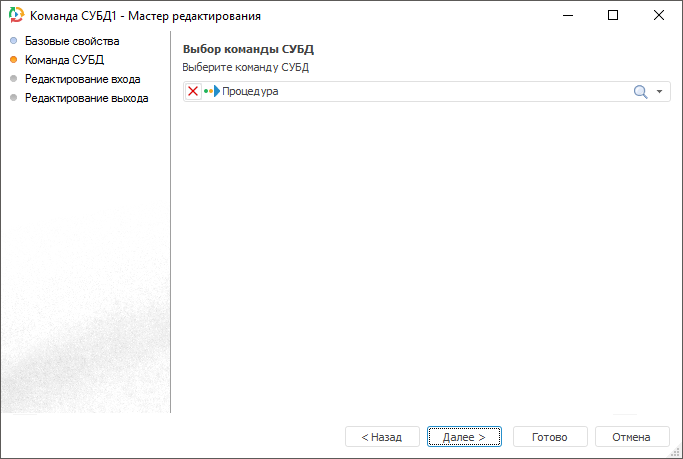 «Команда СУБД» - объект, предназначенный для преобразования данных при помощи одного из следующих объектов репозитория: «Команда СУБД» или «Процедура».