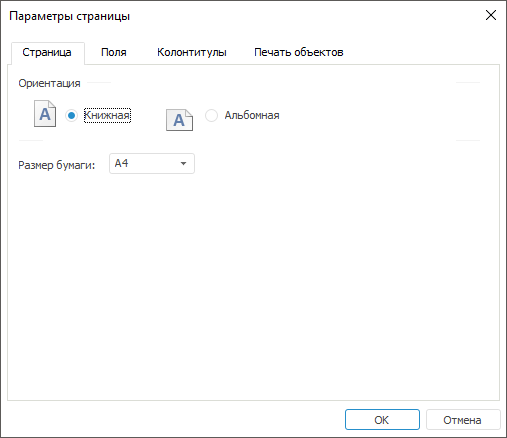 Вкладка «Страница» выглядит следующим образом: