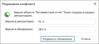 На вкладке «Конфликты» для объектов репозитория доступно контекстное меню: