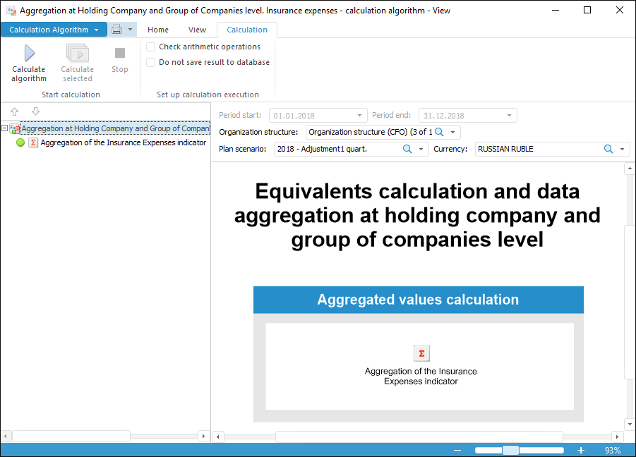 Emulation is started for a single process step: data entry forms with specified parameters open for entry and approval steps, calculation algorithms with specified parameters open for a calculation step.