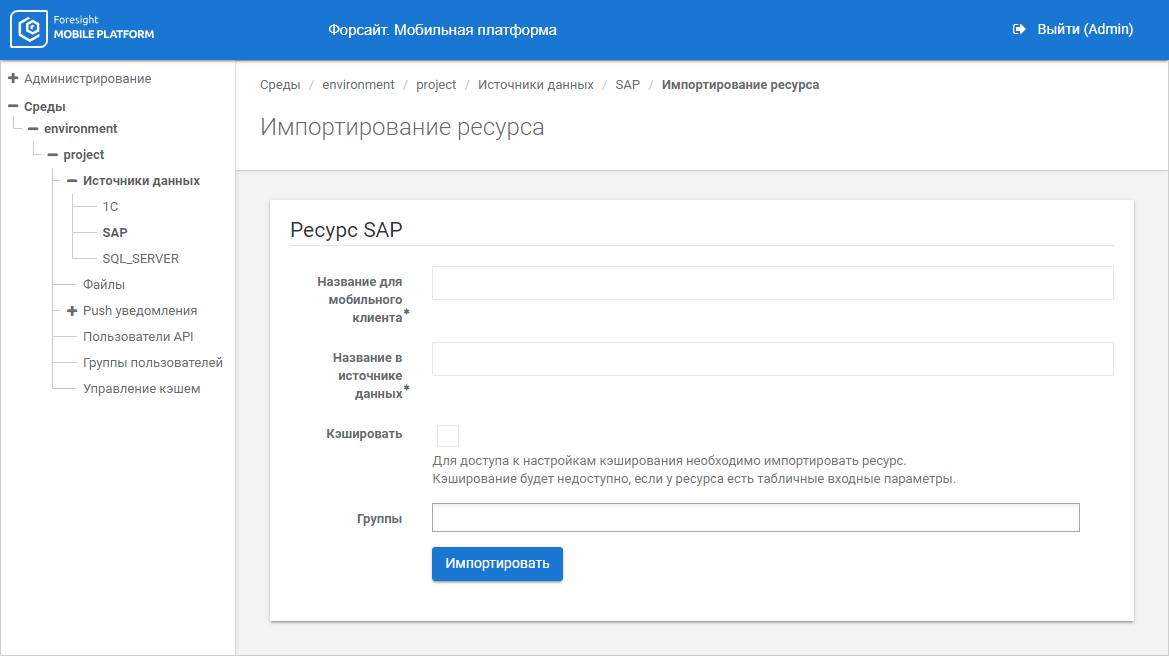 After setting up resource import click the Import button. The resource is imported by the specified settings from data source.