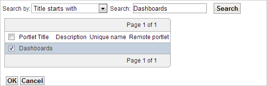 Use the search field to quickly find a portlet: