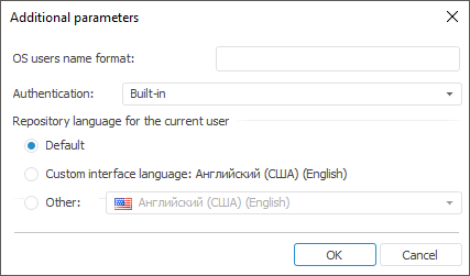 To set up parameters of the current open repository, use the Parameters dialog box.