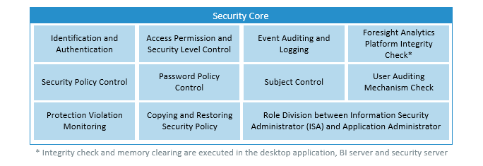 Security server ensures platform information security by executing functions of administration and handling requests between databases and Foresight Analytics Platform.