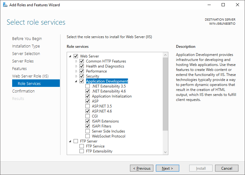 Before installing BI server and the web application to Windows server operating system, add a server role.