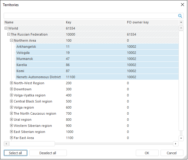 When the calendar dimension displaying mode By Elements and Levels is active, the dialog box can look as follows: