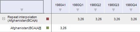 Interpolation by time (repeat). Disaggregates data by repeating values of the source series frequency.