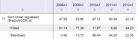 If the formula is set correctly, clicking the OK button closes the expression editor. A calculated series named Non-linear Regression (<Output_series_name>) and containing calculation results is added to the workbook. For example: