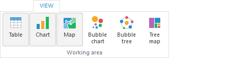 Map. It is based on a two-dimension table and usually consists of one row or column from this table as territory fill. Territory fill is determined by start and end colors, which correspond to minimum and maximum values on the map. Colors of intermediate values are calculated automatically.