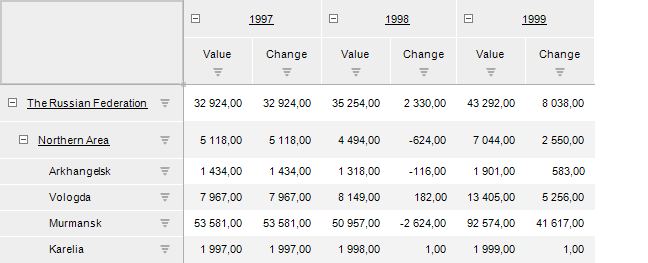 Save changes and close cube editor wizard. Now, if cube will be opened and selection will be added to calculated fact, cube data will look as follows:
