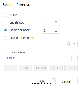 Relations enable the user to get fact values using shift towards the current calculation point. It is used on creating expressions of cube calculated facts.