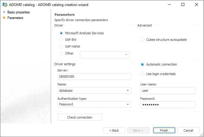 Connecting to Microsoft Analysis Services. This connection uses ADOMD directory to get access to multidimensional bases that are built basing on Microsoft Analysis Services: