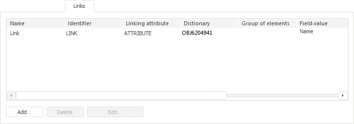 To create and set up links by attributes with other MDM dictionaries, use the Links tab.