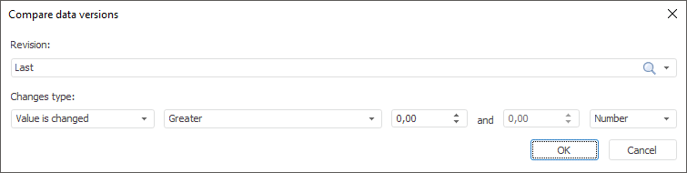 Determine revision which data will be compared to the current data. Use the Revision drop-down list containing all revisions of the current time series data base.