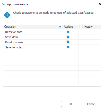 In the desktop application click the OK button in the Set Up Permissions dialog box, and the checkbox state next to specific operations in the Access Control Settings dialog box is updated.