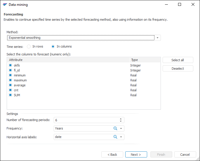 NOTE. Forecasting analysis type is available for all tools of Foresight  Analytics Platform, except for the time series analysis tool.
